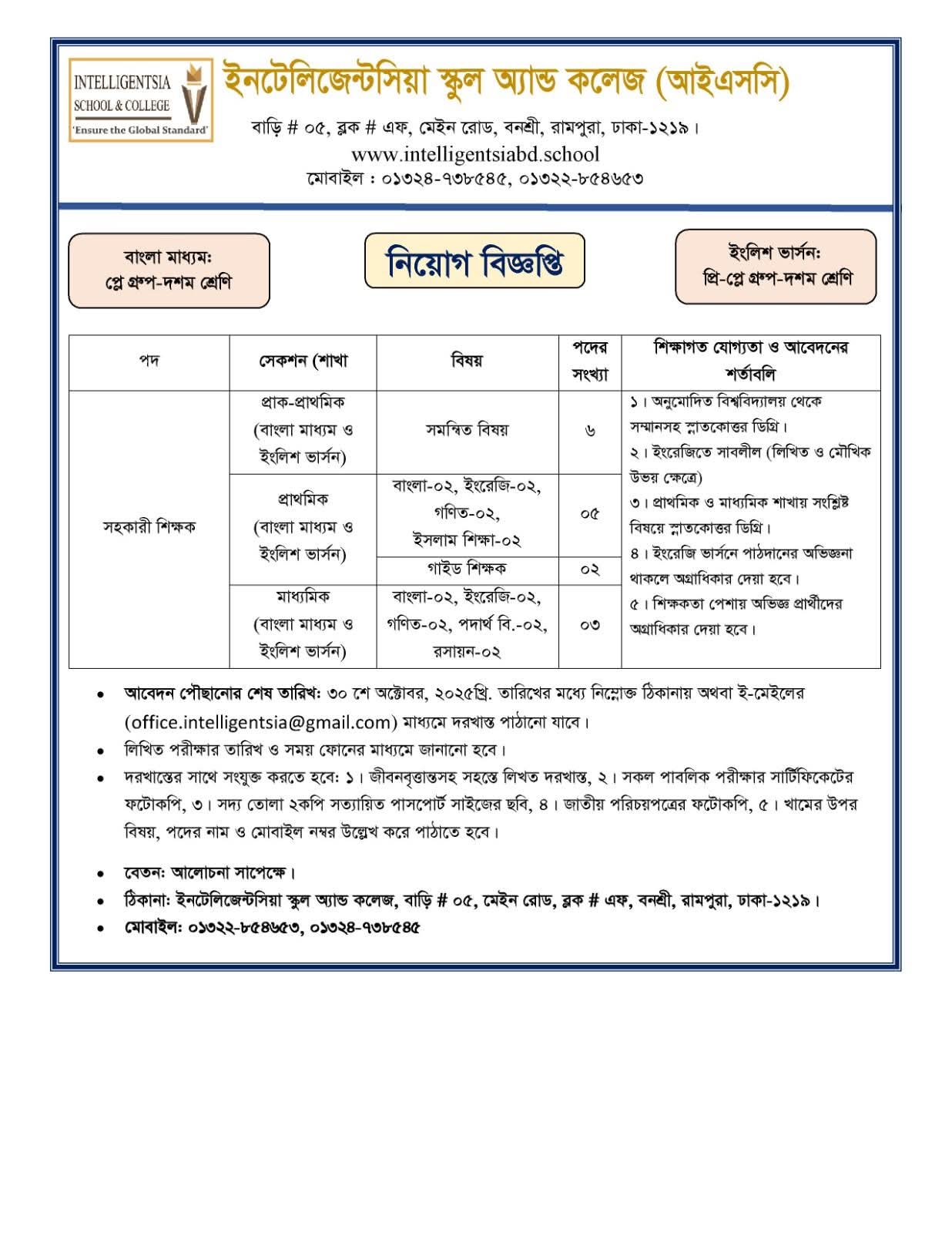 শিক্ষক নিয়োগ বিজ্ঞপ্তি Published on Saturday, October 25, 2025